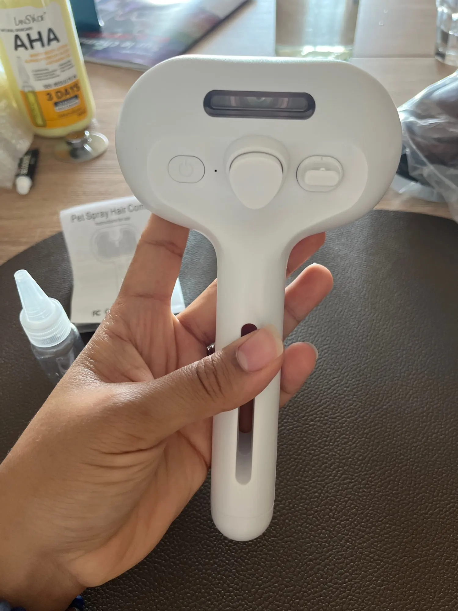 Szczotka rewelacyjna,,!!!!!serdecznie polecam, wszystkie używane dotychczas poszły do lamusa. Nie ukrywam, że obawiałam się, iż nie da sobie rady z dłuższą sierścią moich owczarków szwajcarskich, ale obecnie czesanie to przyjemność dla mnie a co najważniejsze dla piesków. Do pojemnika wlałam płyn ułatwiający rozczesywanie rozcieńczony z wodą przez co delikatnie unosząca się mgiełka rozpylała się na sierść nawilżając a nie mocząc doszczętnie sierść.